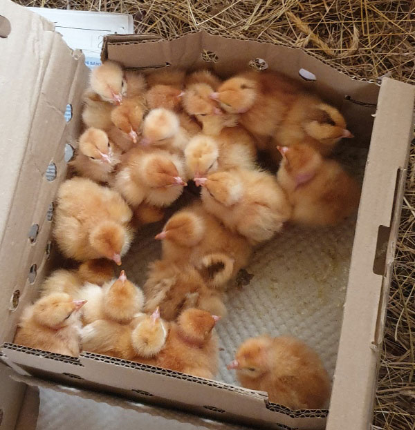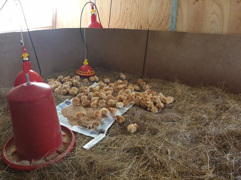 Début août, les premières volailles sont arrivées : des poules pondeuses pour des œufs bio et des poussins qui deviendront poulets bio dans 3 mois ! Voyez plutôt.